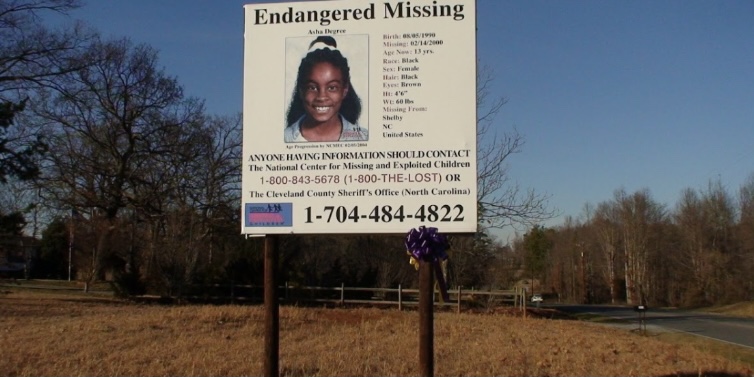 At first, investigators believed that Asha had runaway, as it seemed that she had packed and planned to leave. However, many people did not believe this as Asha was such a young child. Over a year later on August 3, 2001, Asha’s book bag and other items that she took with her were found wrapped in a plastic bag during a construction project off of Highway 18 in Burke County, about 26 miles north of Shelby. Inside the bag also contained Asha’s name and phone number.